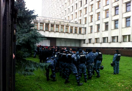 Само здание ЦИК оцеплено представителями милиции и "Беркута".