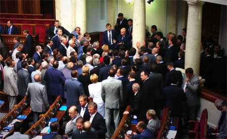 Так же депутаты от Свободы и от Удара разошлись по своим углам залы и проводили совещание со своими лидерами.