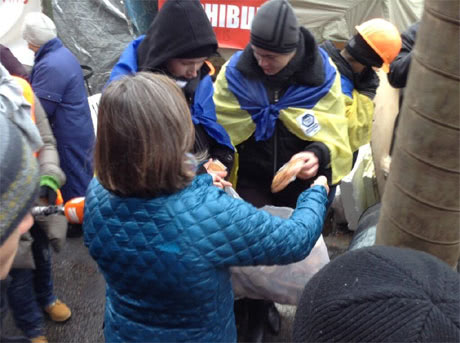Заместитель Госсекретаря США на Майдане и раздает митингующим еду