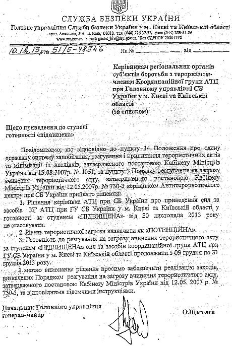 Внефракционный депутат Виктор Балога предоставил документальное подтверждение того, что уже с первых дней Майдана власть готовилась к силовому сценарию. Вплоть до применения мер антитеррористического характера против мирных митингующих.
