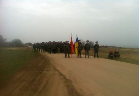 Журналист также отметил, что впереди колонны украинских воинов несут два флага – украинский и флаг части 4515, который не менялся с советских времен.