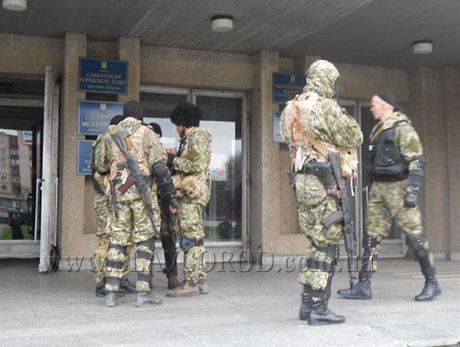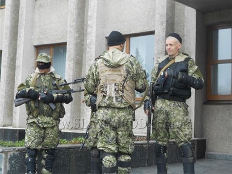 В Славянске возле здания исполкома в понедельник утром появились люди в камуфляжах с автоматами.