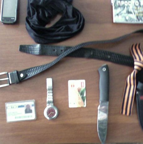 В личных вещах задержанного было обнаружено военную форму , чем , балаклаву и карту Луганской области.