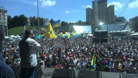 Кроме того, командир батальона "Донбасс" Семен Семенченко, выступая со сцены, рассказал, что украинские военные находятся в ужасном положении, так как средства, которые направлены правительством на их обеспечение, не попадают к адресату.