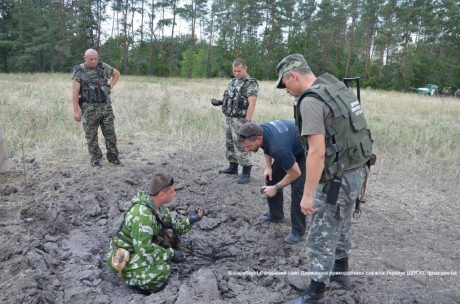 На этом месте были найдены взрыватели от 122-мм снаряда и обломки от 152-мм снарядов. Положение подрывника позволило определить направление его полета, а именно с территории РФ.