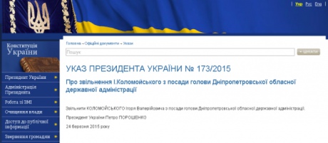 Указ был подписан во время встречи с Коломойским, - сообщает пресс-служба президента Украины.