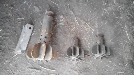 "Осколки мин калибром 82 и 120 мм, а также артиллерийских снарядов калибром 122 мм были собраны украинскими наблюдателями СЦКК после ночного обстрела частного сектора в н.п. Дзержинск в ночь на 13 мая", - говорится в сообщении.