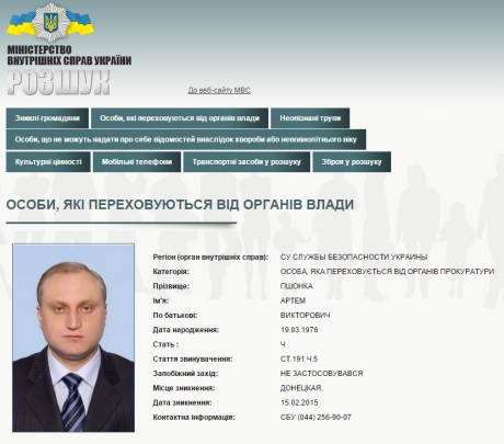 Как известно, Пшонку-старшего объявили в международный розыск по линии Интерпола еще в январе.