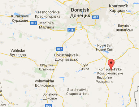 Комсомольское находится недалеко от Старобешево - в 20 км от Старогнатовки, которую в понедельник утром пытались атаковать боевики.