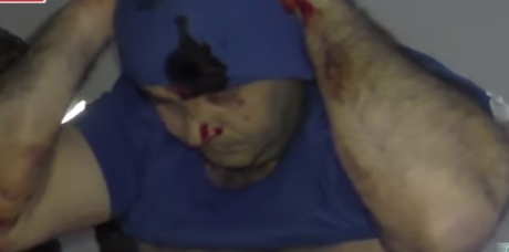 Участие в задержании злоумышленника принимали вооруженные люди, у дома присутствовали "зеленые человечки". Судя по кадрам видео, Лямина били - на полу во время задержания видны следы крови, лицо разбито, есть синяки.