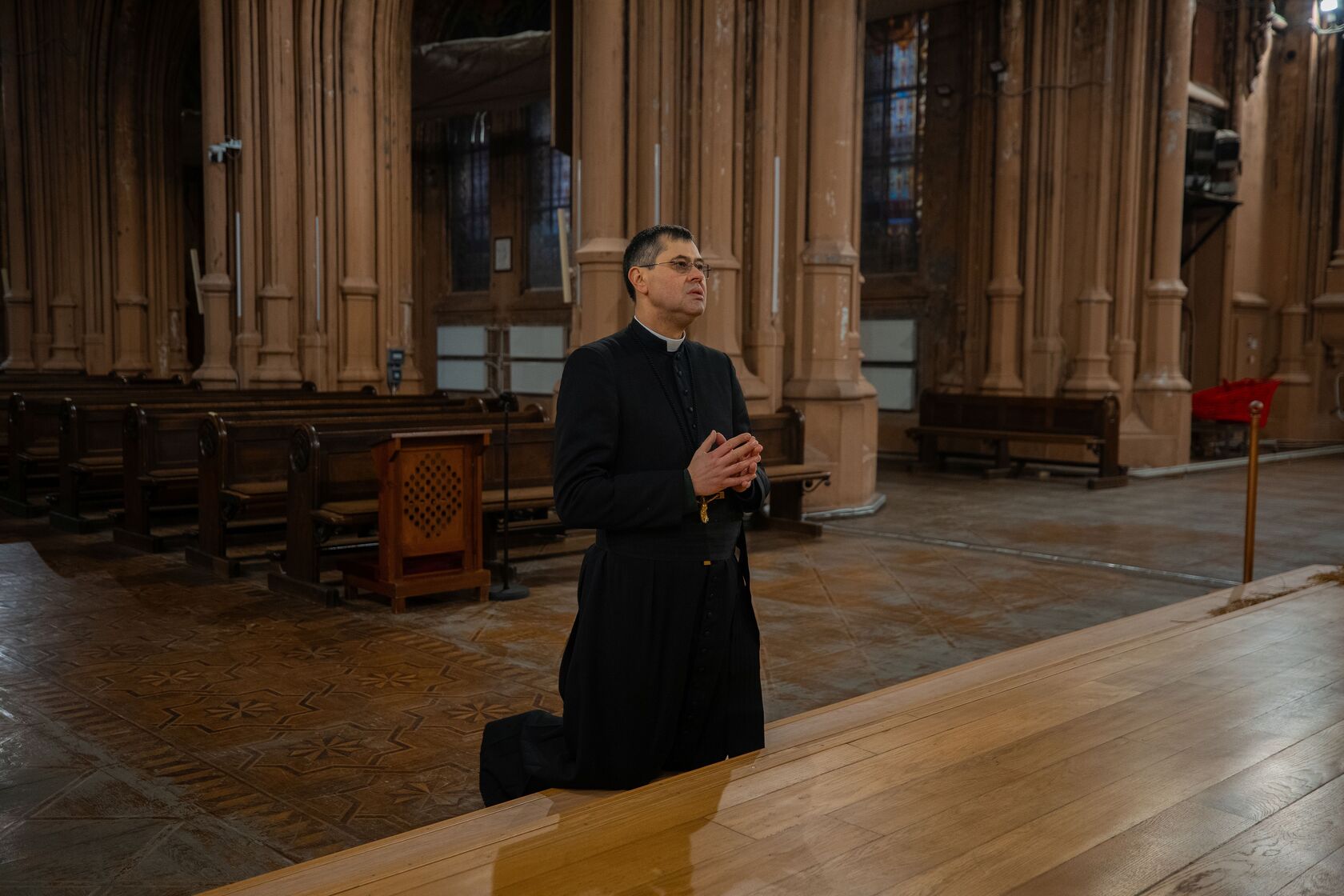 "Це було всього раз, 20 грудня 2024 року після обстрілу, коли ми кликали скласти дефектний акт", – розповідає 50-річний отець Павло Вишковський, настоятель римсько-католицької парафії Святого Миколая в Києві.
