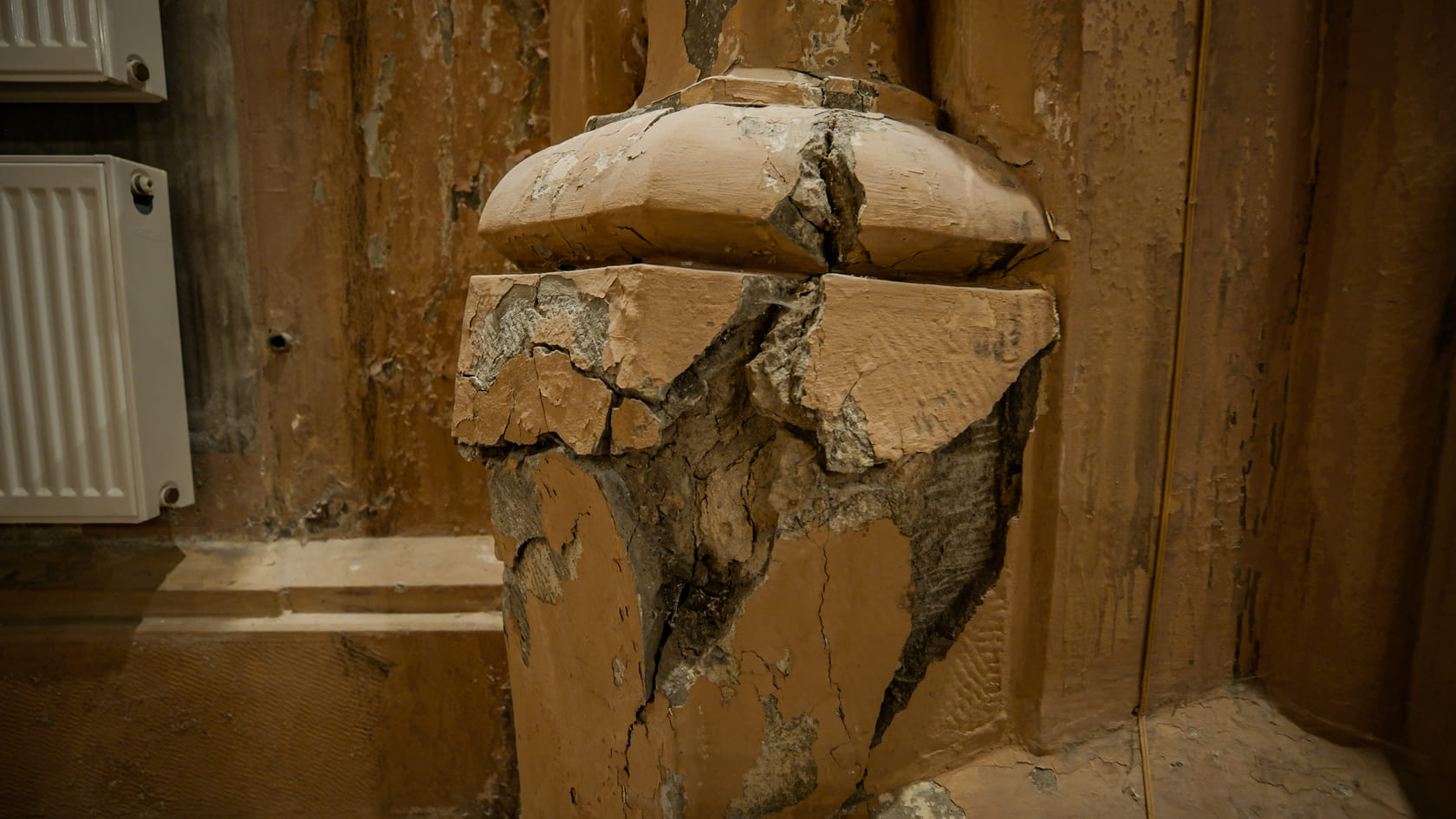 "Є тріщини у фундаменті, бо метро під нами, і тут постійні вібрації. Стіни осідають. Коли робили протиаварійний ремонт, залили 360 тисяч літрів води, щоб відмити сажу", – розповідає Павло Вишковський.