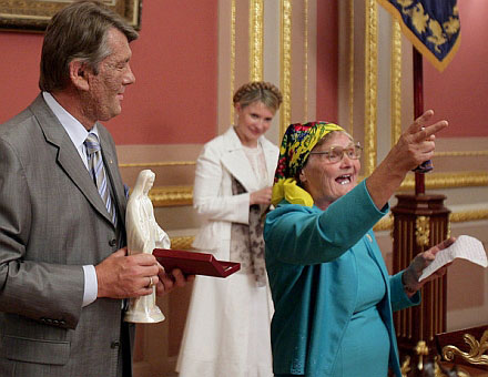 А коли В.Ю., уже як президент, приїздив до Тернополя, спеціально, щоб подивитися на кумира, подолала відстань у 150 км до обласного центру. І дуже сподобалася президентові. Відтак – отримала орден княгині Ольги III ступеня. Але все ж чи не передбачений цей орден для більших звершень? І чи не мають підстави десятки тисяч інших бабів Парасок і Палажок, які стояли за Ющенка на Майдані, просити такі самі ордени, запрошення у Маріїнський та на прийом у двір Софії?