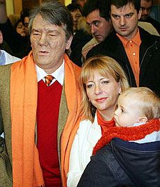 Ющенко виходить з лікарні "Рудольфінерхаус" |