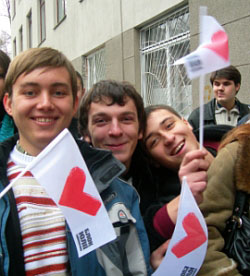 У Будинку Юнацтва на розмови Тимошенко про зняття обвинувачень з неї Верховним Судом студенти реагували питанням: "А як стосовно Болонської системи? А як стосовно збільшення стипендій?" Але її виступ слухали. На балконах висіли прапори "Батьківщини", а в холі – великий портрет Тимошенко та дошка, заклеєна вже згаданими рожевими наліпками.