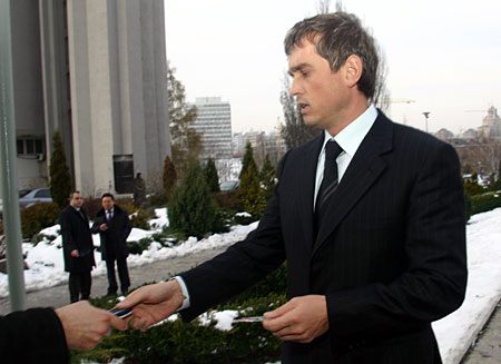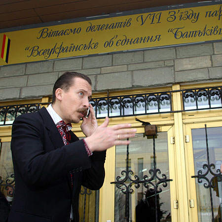 Андрій Шкіль шукає вхід на закритий з'їзд |