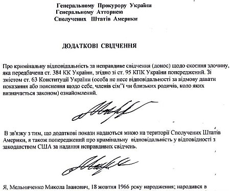 Між тим, Мельниченко передав до "Української правди" текст свідчень, який він скріпив підписом.