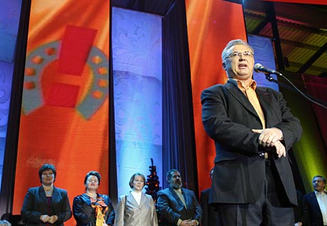 "Наша Україна", яка досі не почала активної виборчої кампанії, у суботу влаштувала свято для політично-солідарної тусовки – старий новий рік. Захід, який проходив у Експоцентрі на Лівобережній, сумістили з презентацією списку блоку. Провели все у невимушеній атмосфері одночасного фуршету і мітингу, коли зі сцени виступили політики, а навкруги були столи з їжею та напоями – вином, коньяком та узваром.