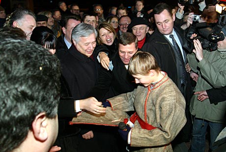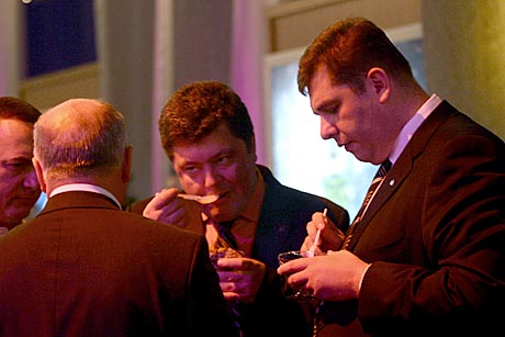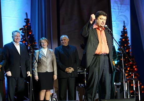 Юрій Єхануров вручив щедрувальнику 5 гривень, а Борис Тарасюк - 200
