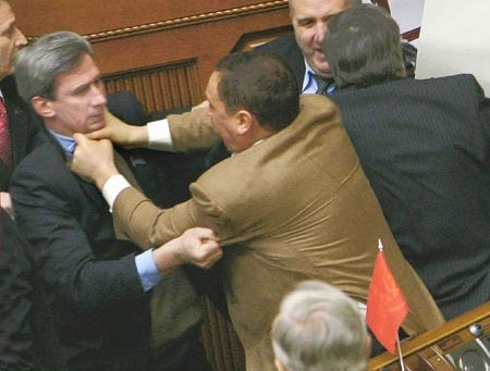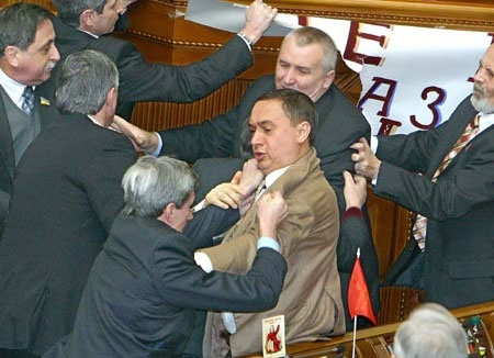 І тепер "прокляття парламентського послання" переслідує Ющенка. У четвер все почалося з бійки, яка зчинилася перед появою глави держави.