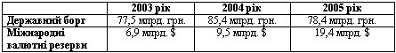 І знову цифри та факти вперто не хочуть свідчити на користь "регіоналів". Державний борг України за 2005 рік скоротився на 7 мільярдів гривень. У 2004 році навпаки державний борг збільшився на 8 млрд. грн.