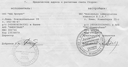 І – не можемо втриматись, аби не зацитувати пару пунктів з "Елітного", чи то "Прогресівського" "Генерального договора о долевом участии в строительстве", підписаного чотирма різними людьми на одну й ту саму квартиру: