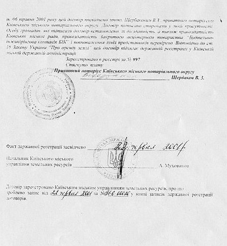 На сканах видно, що під договором оренди ділянки на Шмідта БІКу в 2001 році підписалися і Омельченко, і Муховиков. А як же інакше? А останнє продовження дозволу на будівництво датоване... 28 грудня 2005 року, коли вже мінімум півроку як шарагою зіц-Фунта Добрікова - "Прогресом" - укладалися "подвійні", "потрійні" та інші подібні договори!