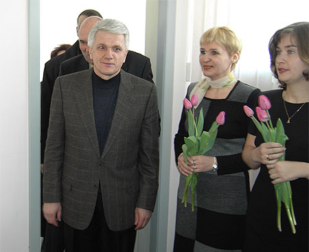 У бібліотеці Литвин зустрівся з місцевими активістами Народної партії, які подарували йому краватку виробництва місцевого підприємства "Гобелен". Аксесуар за естетичними характеристиками явно не дотягував до рівня другої особи держави. Спікер чемно відповів, що віддасть краватку синові.