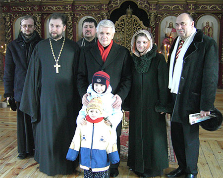 | Литвин разом з батюшкою і матушкою місцевої церкви |
