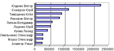 При цьому сумарний індекс медіа активності Віктора Ющенко - майже в 2 рази перевищує аналогічний показник Юрія Єханурова і в 3.9 разів аналогічний показник Володимира Литвина.