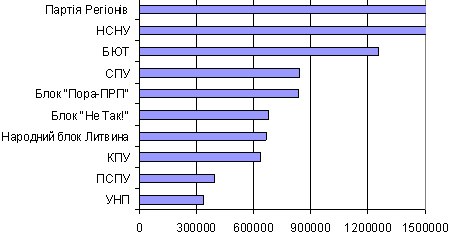| Медіарейтинг 10 найбільш часто згадуваних в ЗМІ політичних партій з 04 березня по 10 березня 2006 року. Данні інформаційно-консалтингової компанії "КомІнформ". Всього компанія рейтингує 50 партій |