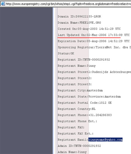 ТÑеÑÑ. ÐмÑна Ð´Ð°Ð½Ð¸Ñ Ð¿Ñо доменне Ñм'Ñ http://freelove.org вÑдбÑлоÑÑ Ñого ж днÑ, коли на ÑÐ°Ð¹Ñ Ð±Ñло заванÑажене "ÑимоÑенкине ÑеÑÑе" â 2 беÑÐµÐ·Ð½Ñ 2006 ÑокÑ.