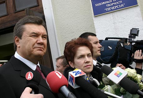 Фаворит парламентських виборів Віктор Янукович прийшов голосувати у супроводі відомої всій країні дружини та десятка охоронців. Ще стільки ж спецагентів із радіопередавачами у вухах зайняли виборчу дільницю перед приходом лідера Партії регіонів.