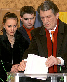 В супроводі президента Віктора Ющенка цей самий син, Тарасик, з'явився на виборчій дільниці, де його батьки та старші брат і сестра віддали свої голоси.