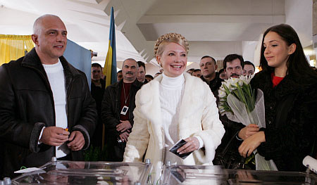 Юлія Тимошенко голосувала у Дніпропетровську, де за її чоловіком досі значиться квартира в 32 квадратних метри. Разом з ним та з донькою Євгенією вона і з'явилася на виборах.