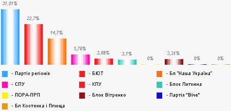 Аналіз даних екзит-полів показує, що Партія регіонів отримує від 150 до 180 місць у новому парламенті, БЮТ - близько 120, "Наша Україна" - 75-95, соціалісти - від 40 до 50 депутатських мандатів.