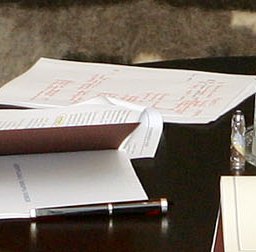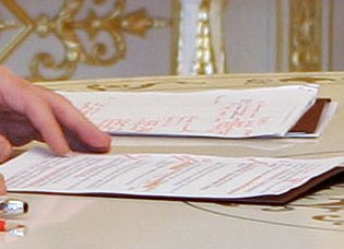 | Цей план (нагорі), написаний червоною ручкою, весь час був на столі президента. Це фото з зустрічі з Єхануровим |