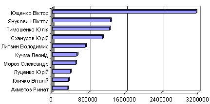 Особи, що ввійшли в першу десятку по інтенсивності медіа присутності в друкованих ЗМІ, представлені на першому малюнку.