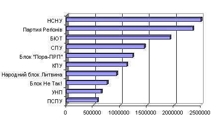 Період оцінки з 25 лютого по 03 березня 2006 року. Проаналізовано 907 статей в 204 друкованих ЗМІ