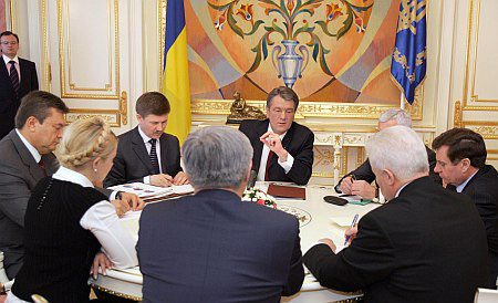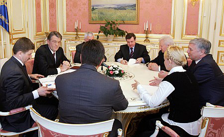 У вівторок, як і було заплановано, до секретаріату президента для зустрічі з Ющенком прибули Юлія Тимошенко, Віктор Янукович, Юрій Єхануров та Олександр Мороз.