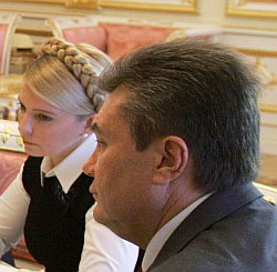 Тимошенко сиділа на зустрічі з засмученим виразом обличчя. Янукович, як завжди, за порадою своїх американських радників, говорив небагато.