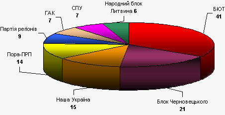 За результатами виборів до Київради потрапили 8 політичних сил. Більшість голосів здобув Блок Юлії Тимошенко. Його результат – 41 депутатський мандат. На другому місці – блок новообраного мера Леоніда Черновецького з 21 мандатом.