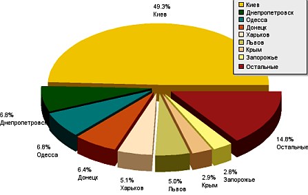 Географія розподілу користувачів. За даними тієї ж "Глобальної статистики українського Інтернету", аудиторія української мережі більше всього зосереджена в Києві – біля 50%. Далі ідуть Дніпропетровськ, Одеса, Донецьк, Харків, Львів, Запоріжжя.