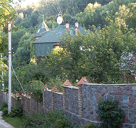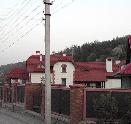 Якщо їхати далі, то можна побачити скромні хати простих мешканців села. Аж раптом під горою стоїть ще один маєток – це, як кажуть аборигени, територія директора універсаму.
