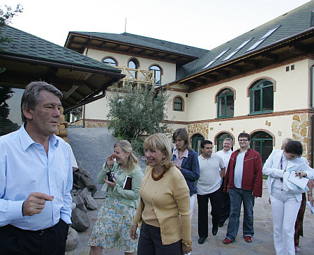 | Ющенко проводить екскурсію подвір'ям свого нового будинку. Фото прес-служби президента |