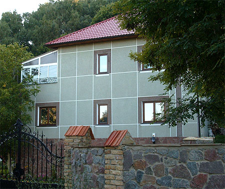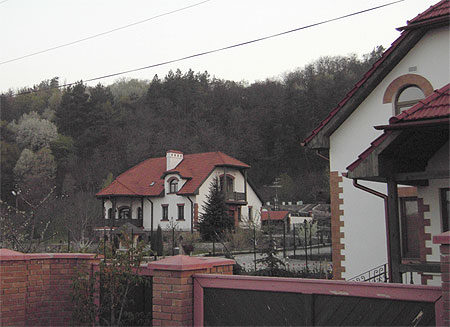 Тут стоїть кілька будинків Ющенка, які завершили зводити минулого року. Сюди також влітку 2005 року завозили журналістів.