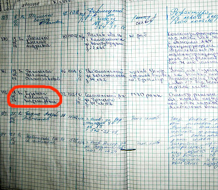 | Виписка з журналу. Дата надходження, місце начебто проживання Кузовкіна |