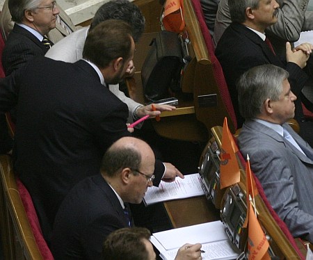 Три помаранчеві фракції розважались вивченням угоди про коаліцію – у кожного з них на робочому місці лежала червона течка. Регіони раділи першим неузгодженостям коаліції.