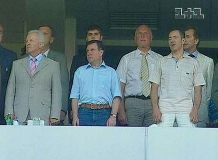 | Мороз і челядь на стадіоні. Справа від Мороза - Мартинюк і Рудьковський. За ним - Сафіуллін |