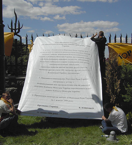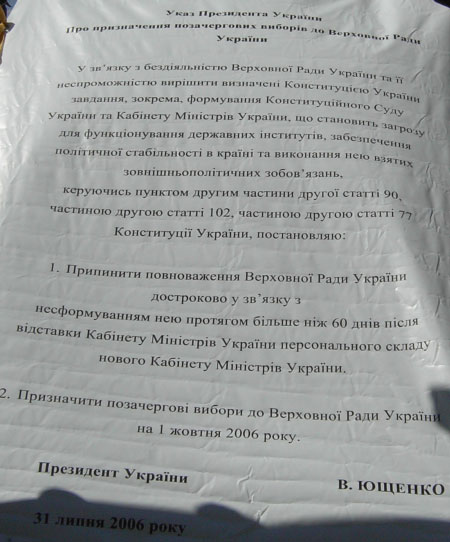 | Поки Янукович був у Ющенка, "Пора" показала президенту, що підготувала для нього указ |